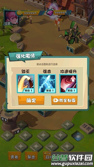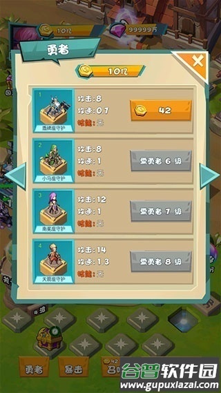 4、点击勇者角色,可对其攻速等属性进行强化提升;
