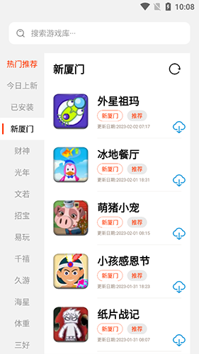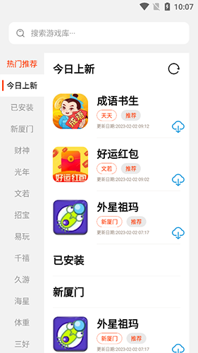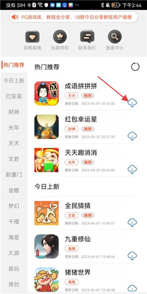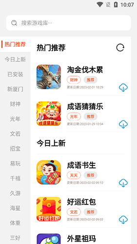 1、在游戏推荐页面找到【游戏】,点击其右侧云状下载图标。