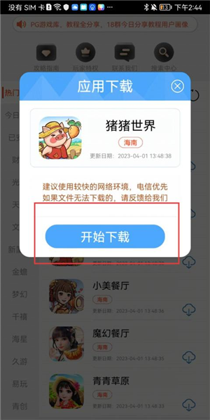 2、弹出【应用下载】窗口后,点击【开始下载】按钮下载游戏。