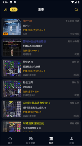 3、进入集市板块,可以进行游戏物品的交换操作。
