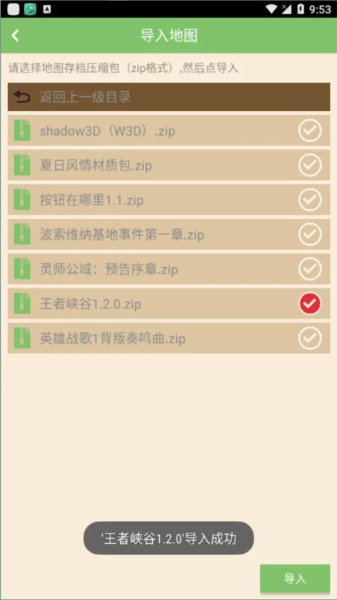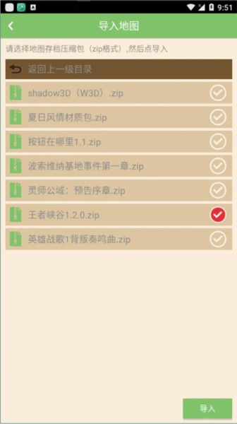 3、在手机存储中找到已下载的资源文件,选中并确认导入;