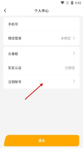 2. 在个人中心页面,找到并点击最下方的注销账号选项。
