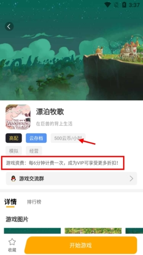 3. 每款云游戏的启动界面都会显示费用与扣费情况,部分游戏支持免费启动。