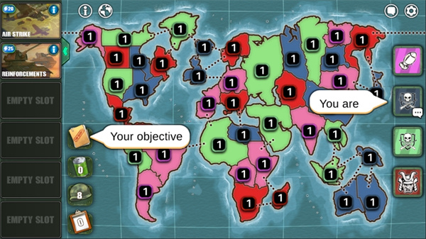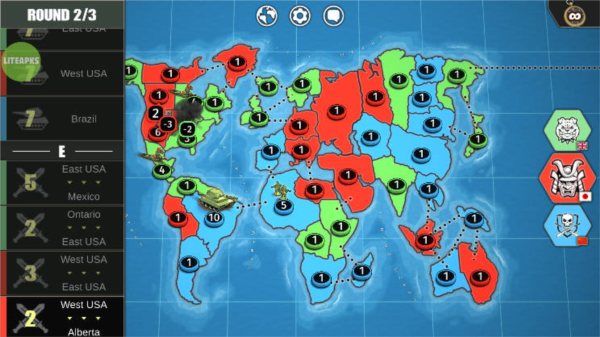 这款棋盘游戏带来了与众不同的体验,它融合了经典战棋游戏的精华并加以创新。玩家可在在线模式中与全球对手较量,争夺奖杯提升排名;也可在离线模式下与智能AI切磋,磨练战争艺术。通过不断晋升至更高军衔,能够解锁原子弹、闪电战等高级战术武器。所有玩家同步规划并执行行动,使得一局对战通常在数分钟内便能结束,节奏紧凑。