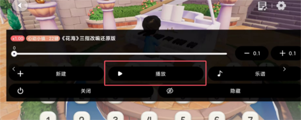 播放时悬浮图标四周有蓝色圆圈环绕,代表播放进度,全部环绕表示演奏结束。