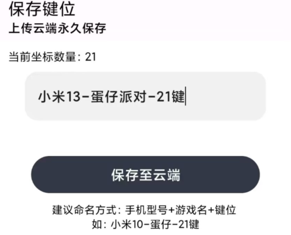 全部对应后点击保存;用户也可将键位保存至云端,方便下次直接调用。