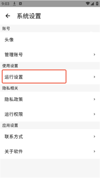 进入设置后找到运行设置。