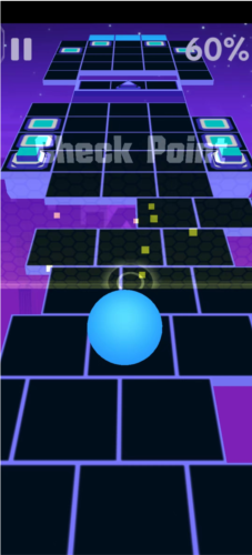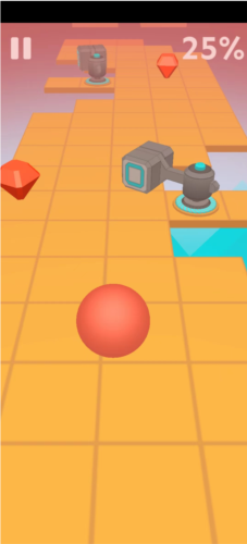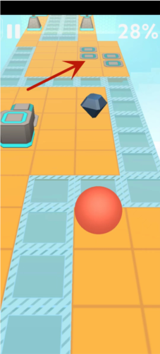 2、过程中无需上划令球跳跃,重点在于控制行进方向;小球会自动越过低矮方块,只需调整其落点;遇到红色图案钻石时滚过去获取,始终沿道路缝隙前进。