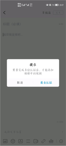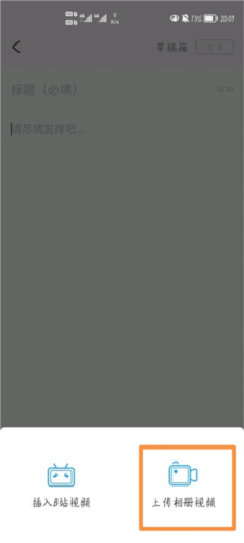 2、点击视频按钮,并从相册中选择视频上传。