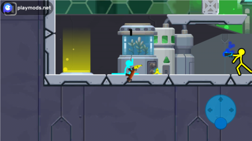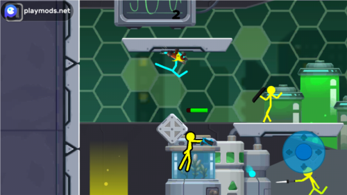 基础操作指南:通过方向摇杆控制火柴人移动,向上推动可使角色跳跃。