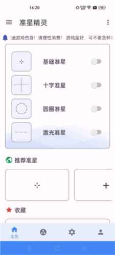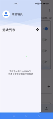 3、点击主页左上角菜单打开侧边栏,点击工具栏右侧加号添加常用游戏至快捷列表;可重复添加多个游戏;返回主页开启准星后,通过侧边栏点击游戏即可快速启动。