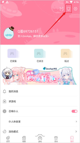 1、打开QooApp后,点击右下角“我的”入口。