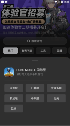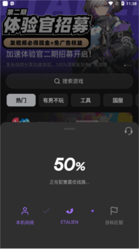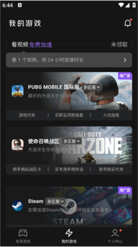 游戏库采用卡片式设计,用户通过滑动即可浏览游戏海报,快速定位目标游戏,并一键完成加速启动。