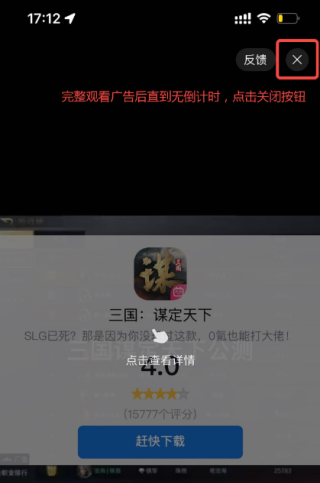 3、完整看完广告,点击关闭按钮即可免费加速。