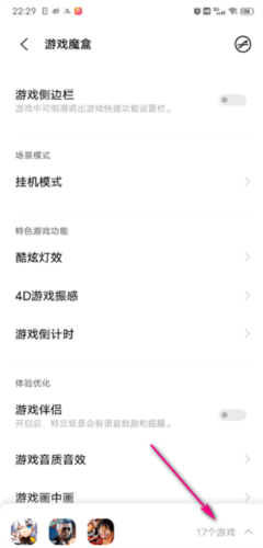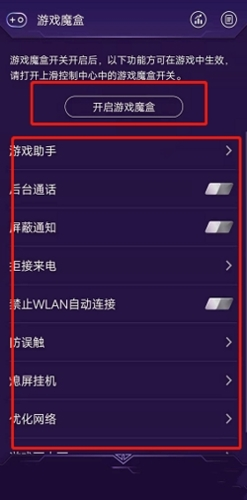 2、在手机设置中找到游戏魔盒选项并点击进入;