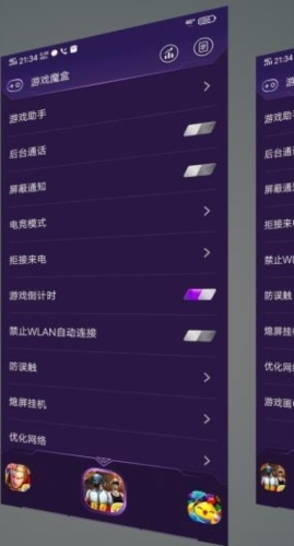 1、通过上滑菜单点击按钮即可开启或关闭游戏魔盒主开关;长按同一按钮则可直接进入应用界面。