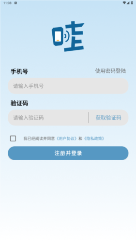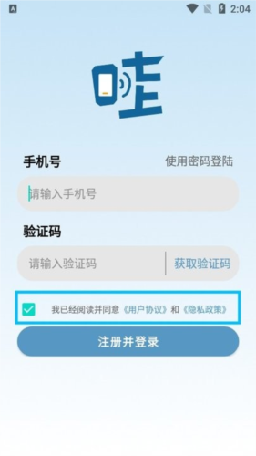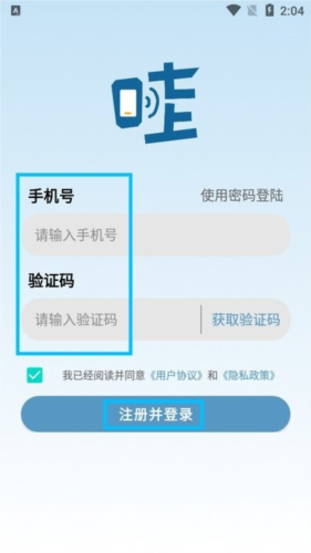 ·输入您的手机号码及收到的验证码,完成【注册并登录】流程。