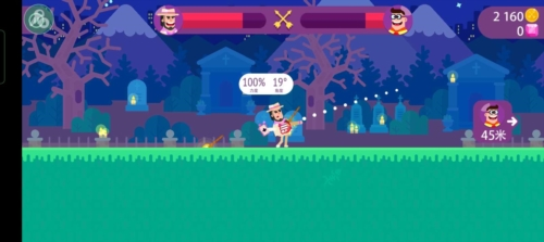 游戏操作采用经典弹射机制,类似愤怒的小鸟;按住屏幕并向后拖动,即可显示力量条与角度线,松开后武器便会沿抛物线射出。界面清晰标示数值,方便玩家调整并提高射击准度。