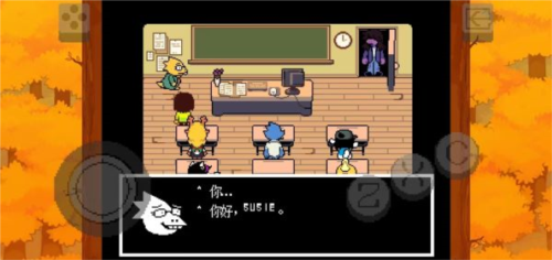 6、克里斯到达学校时,老师艾菲斯已布置小组作业,并要求学生两两组队;克里斯到来时,其他同学均已找到同伴;玩家需让克里斯与第一排最左侧的同学对话,按“乙”键进行交流;此时另一人出现;