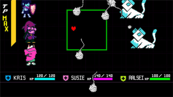 17、战斗系统颇具特色;与传说之下类似,存在不攻击即可结束战斗的方式;首先需要在行动选项中选择相应动作,当怪物名字颜色变化后,便可进行宽恕,从而解决战斗;玩家无需过于担心血量,角色拥有回复技能;使用技能会消耗TP点数,TP可通过行动或攻击积累;
