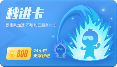 可以看到秒进卡售价为800金币,购买使用后可获得24小时的秒进权限。