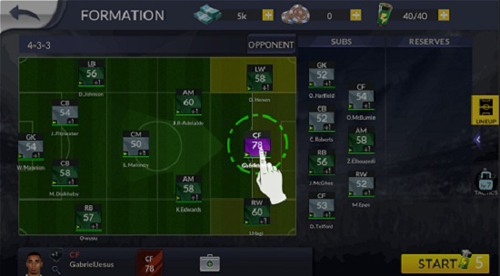 阵型可自由变更,游戏内置16种快速预设阵型,选择后仍可微调每个球员的具体位置。