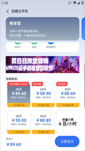 VMOS云手机创新采用小时计费机制,随用随开;云豆兑换比例为1:100,小时计费直接消耗云豆。