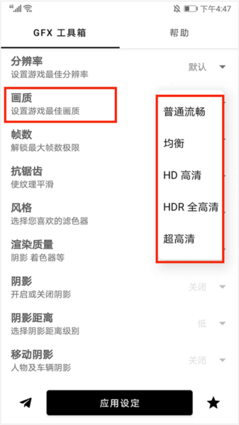 包名:eu.tsoml.graphicssettings