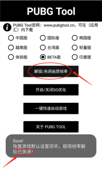 注意:如需配合其他画质工具(如GFX Tool等)使用,请先长按『解锁/关闭画质帧率』取消解锁,否则其他工具可能无法生效。