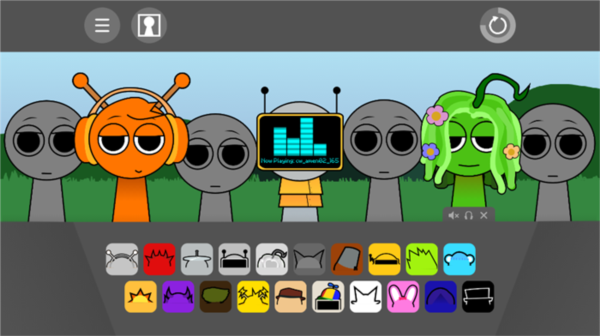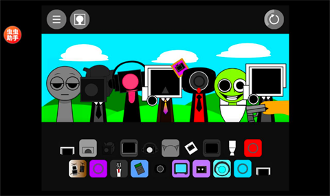 2、游戏包含全部Sprunki角色,他们以丰富表情进行演唱;装饰物包括电视机、小猫、太阳等元素。