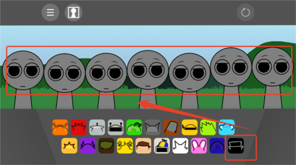 1、进入游戏后,将右下角的黑色帽子拖放到上方任意角色上。