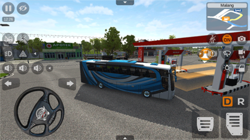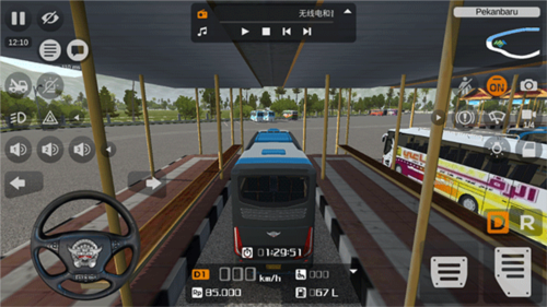 3、你将操控一辆巴士执行任务,左侧界面管理方向盘与转向灯,右侧控制油门、刹车及档位;