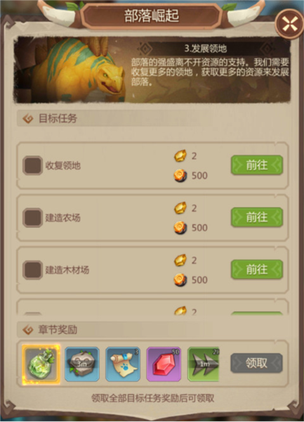 前期章节任务赠送大量资源与加速道具,按照每个章节的指引完成即可。