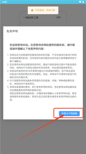 2、用户使用本工具创建房间时,需自行承担游戏过程中可能产生的风险;本工具不对游戏内的任何损失或纠纷负责。