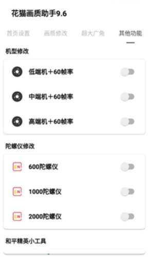 4. 在其他功能板块,还可以进行机型修改、陀螺仪修改,并使用和平精英相关小工具。