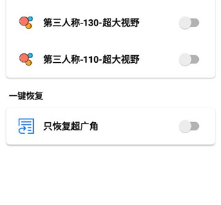3. 点击超大视角选项,可以分别设置第一人称和第三人称下的110、130、145、170等超广视野。