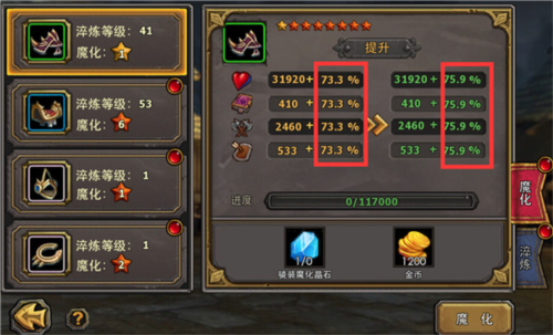 5、每提升一星,所需的魔化原石或魔化晶石数量会逐步增加;