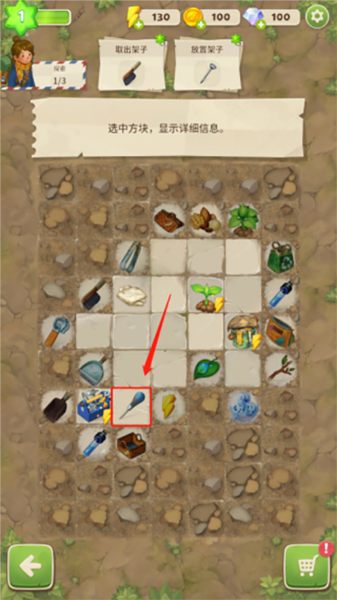 2、界面顶部会显示当前需合成的工具,将两个相同工具移动连接便能完成合成。