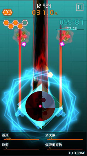 双击屏幕可施放“爆弹”。爆弹能消除敌方子弹并将其转化为道具,使玩家短时无敌,并造成可观的范围伤害。