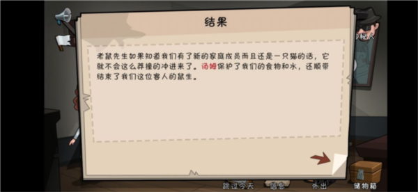 (5)老鼠侵扰:使用吸尘器可能损坏设备;消耗1份沐浴露可安全驱赶;使用刀具有小概率损坏地图;直接关闭事件必定损失地图;若家中养猫,关闭事件猫会自动捕鼠。