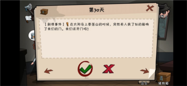 (1)深夜异响:使用手电筒探查,可能发现野猫或小偷,小偷会逃跑无损失;若是野猫,将触发后续喂食与收养剧情。使用手枪则会发现尸体,心情下降,且猫死亡不再触发收养;若无手电或枪械只能关闭事件,会损失1份食物。