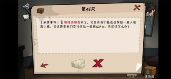 (5)瑞德的朋友:商人瑞德的朋友前来询问,是否愿意支付10金钱跟随他们离开。