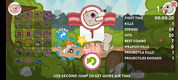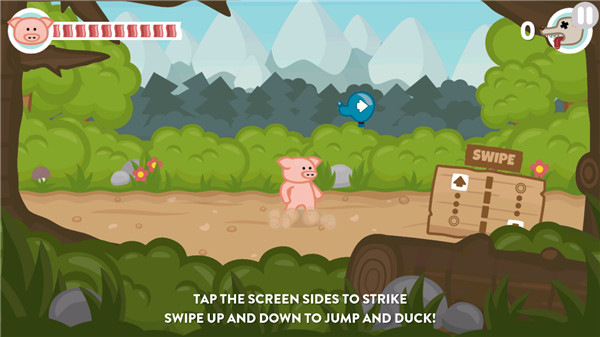 1、安装功夫小猪手机版后,点击屏幕中央开始游戏,通过触控操作让小猪施展功夫动作,击败不断出现的狼群;