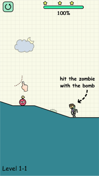 1、操作简单直观:只需手指画线,让炸弹滚向僵尸即可完成关卡;