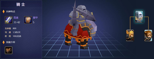 人族三号位热门兵种,小型骑士性价比突出,被动减伤使其成为优秀的分散承伤单位;黑暗骑士提供群体护甲光环,能有效提升队伍整体防御;嗜血骑士输出较高但生存一般,依赖攻速与吸血,适合特定开局或阵容补强。