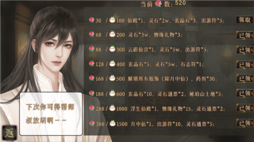 7月:街市惩恶与赚取灵石交替进行,夜晚客栈交流使特定角色好感达标;
