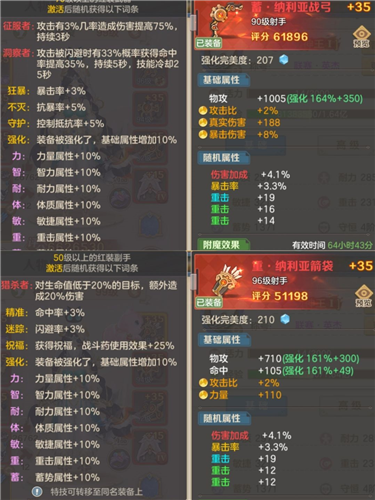 橙色属性可根据职业玩法选择暴击率百分比、抗暴率百分比,或基础属性转换的蓄势重击属性;