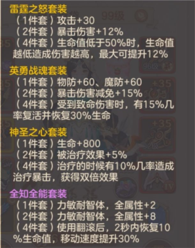 人物等级达到70级并换上70级红装后,需开始选择装备套装。当前版本多数玩家选择两件套英勇搭配两件套雷霆的组合,获取暴击伤害与爆伤减免的套装属性。此搭配方案除白贤者职业外,其他职业通用。走续航路线的白贤者可考虑两件套英勇战魂搭配两件套神圣之心。