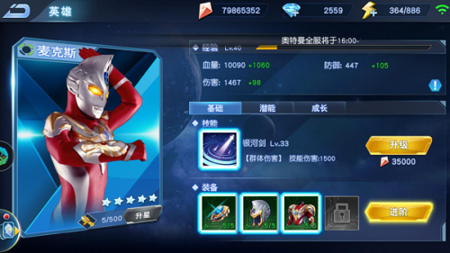 潜能三:银河加农·麦克斯;根据阵容需求决定是否加点,因高斯奥特曼上场频率一般。