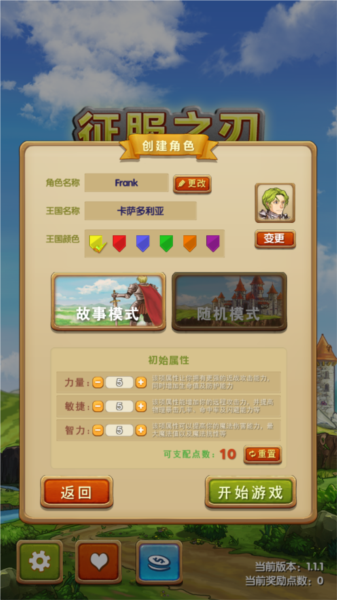 1. 游戏开始时,创建你的角色,设定王国名称与颜色,并选择初始模式与属性分配。